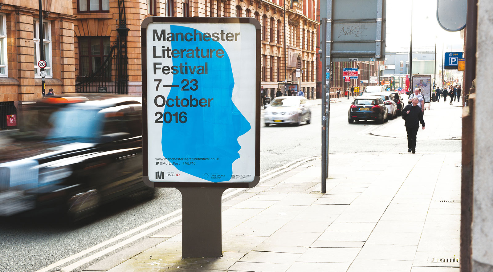 We love a good book at Mark, and we’re proud of our home city. So not many of our achievements give us more satisfaction than our long and happy relationship with the Manchester Literature Festival (MLF). This year, we notch up a decade together. The secret of such long-term success? Partly, at least, it’s because we’ve taken a really bold approach. Early on in the partnership, we created a powerfully bookish visual identity to help set MLF apart from the ever-proliferating plethora of book festivals across the UK. But in terms of each year’s promotional campaign, we have started with a blank sheet of paper, creatively speaking. The result, we hope you will agree, is 10 campaigns (so far), each based on a compelling creative “storyline” of its own, but all adding up to a coherently undputdownable continuing narrative…