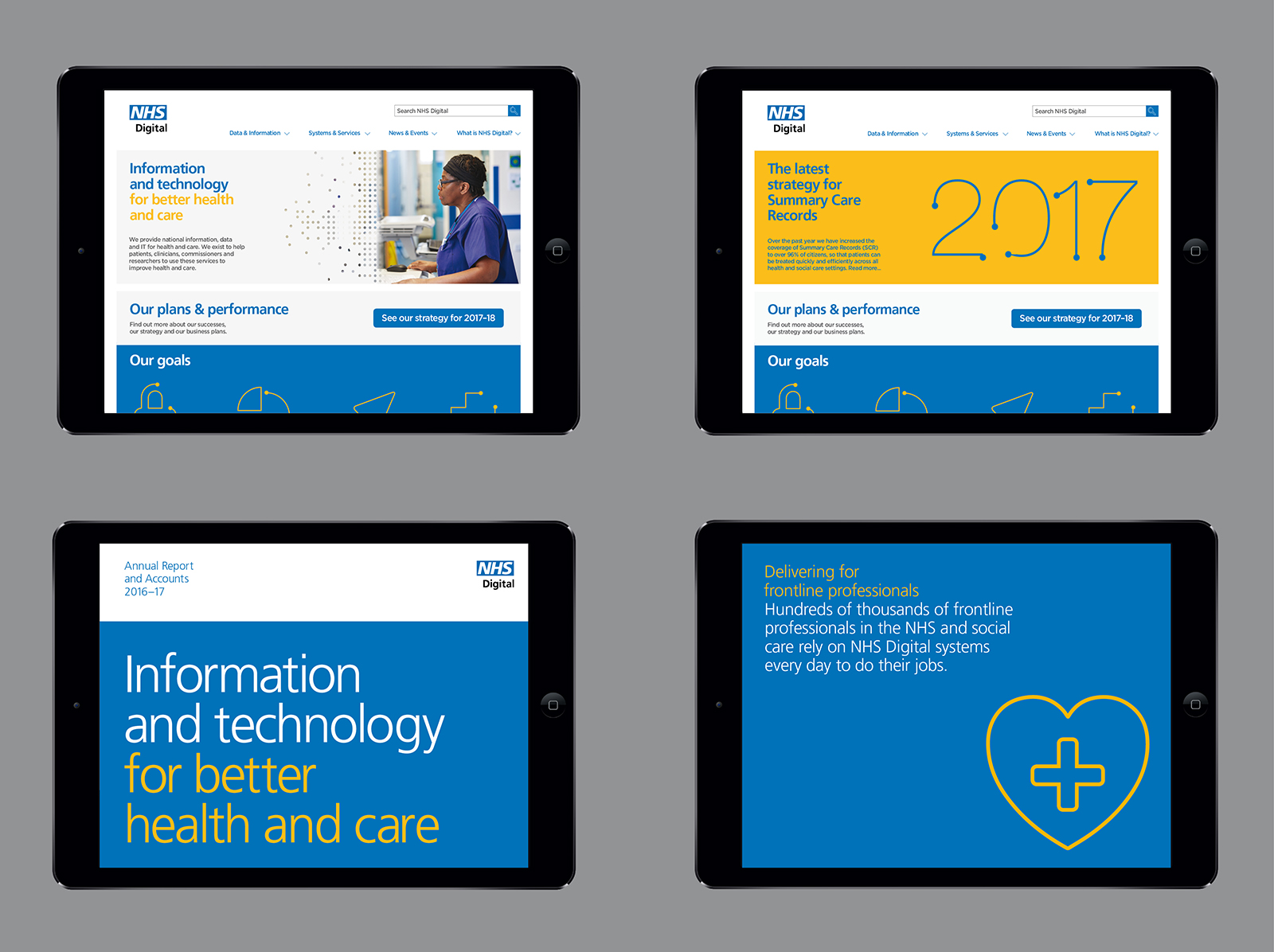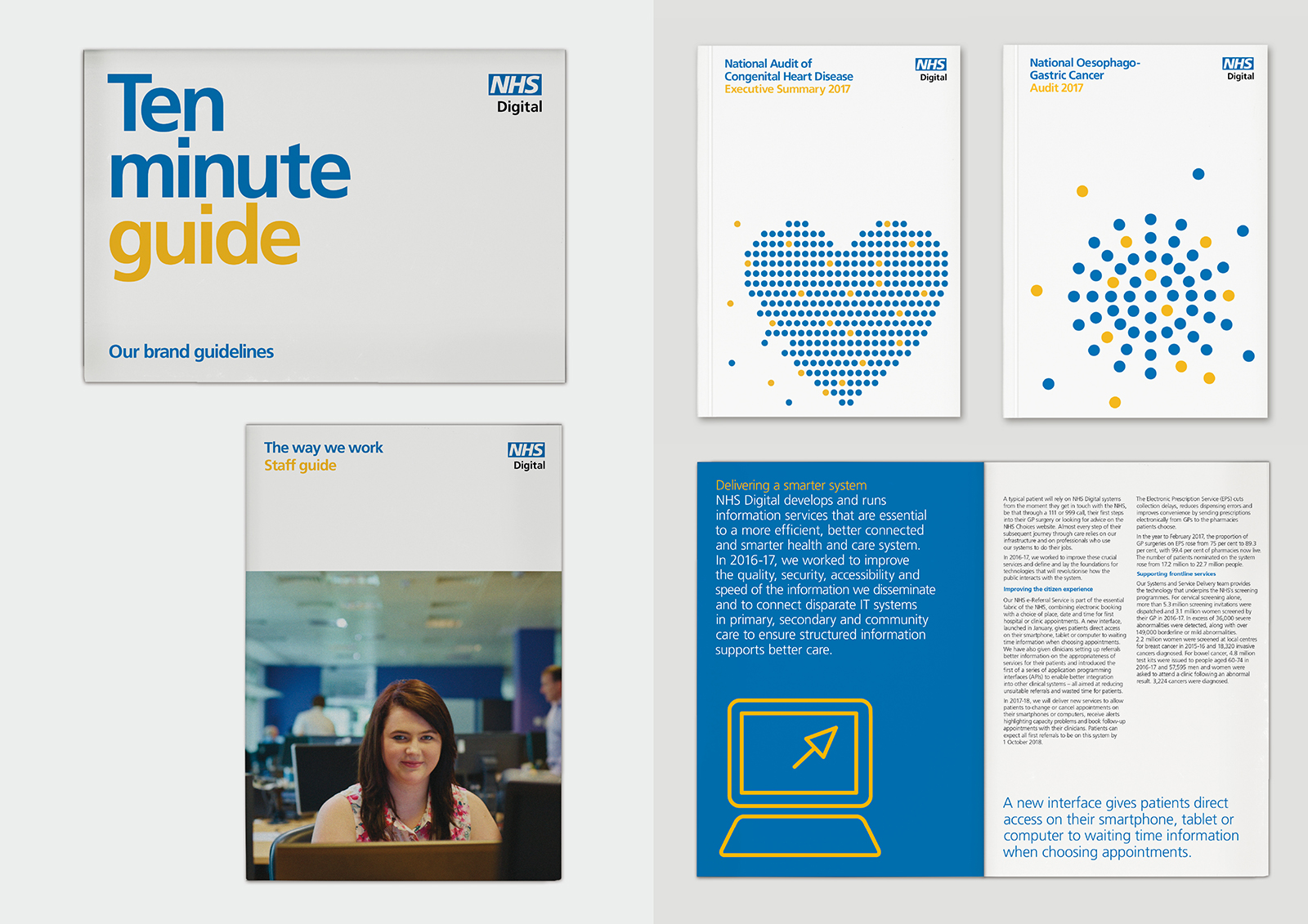 When we started working with them, the Health and Social Care Information Centre (HSCIC) was the national provider of information, data and IT systems for commissioners, analysts and clinicians in health and social care. And with improvements in healthcare increasingly driven by digital technology and communications, they were doing vitally important work. But their bit-of-a-mouthful name and a lack of clarity and coherence in their identity weren’t doing a good job of communicating this. From our research, the first suggestion to emerge was a change of name, to the much more direct and altogether snappier NHS Digital. Building on this, we set to work to create a bold and coherent new look that would help them tell their sometimes complex story strongly and succinctly, across a wide range of applications and audiences. Based around the concept of creating connections, our solution elegantly reflected their embrace of digital technology, and their mission of making data transparent. We also provided guidance on the use of a strapline, co-branding and tone of voice.